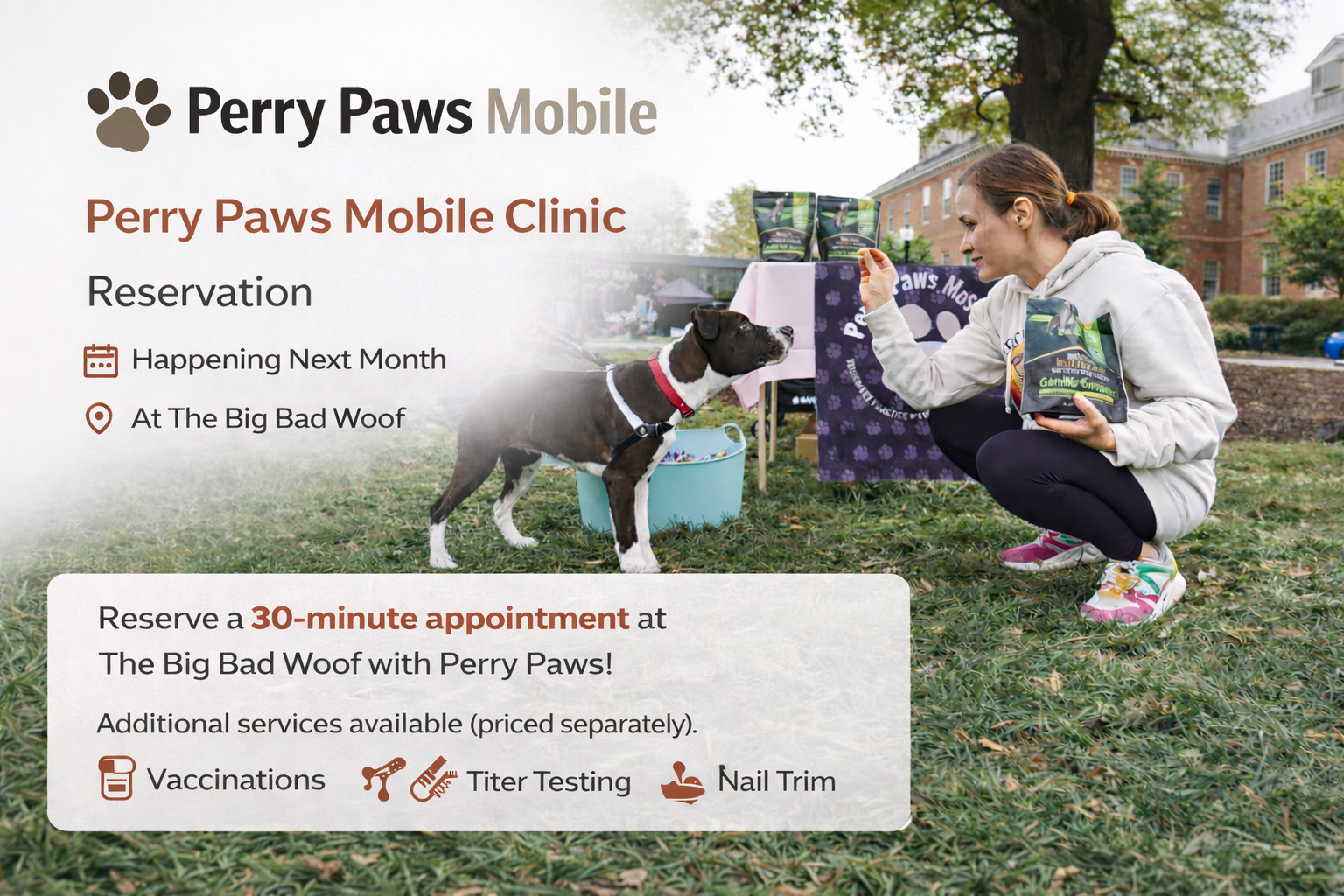Thank you for reserving your appointment with Perry Paws Mobile Veterinary Clinic at The Big Bad Woof! 🐾